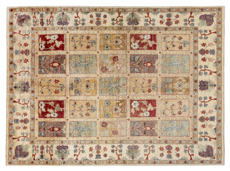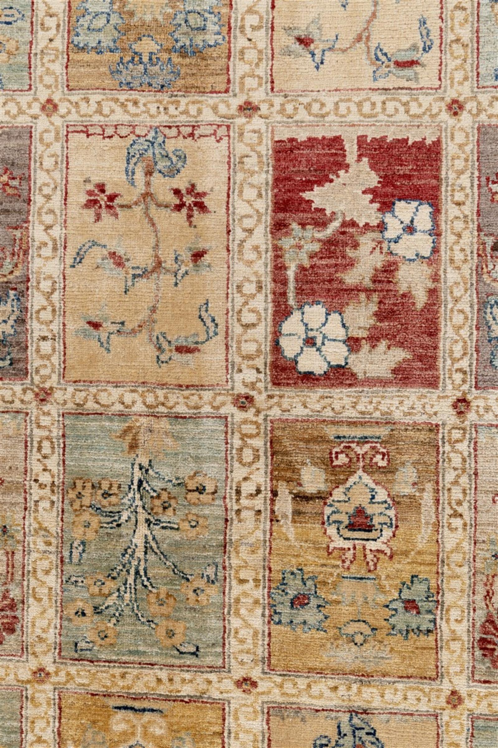 This rug is made of hand spun sheep wool of the highest quality. Especially in Iran (former Persia), Afghanistan and Pakistan wool is still spun by hand before the actual knotting of the rug begins. Wool has proven itself as a natural and extremely hard-wearing material over centuries. Among other things, it has dirt-repellent and heat-insulating properties. At the same time, wool is incomparably soft and has a natural shine.