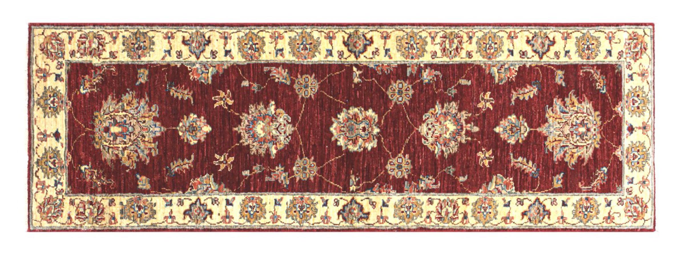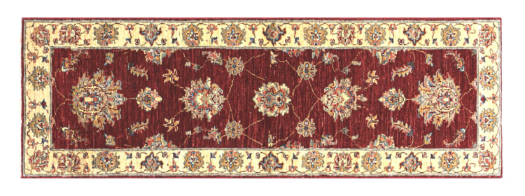 Carpet ID: 290648001971416 Size: 191x60 cm Thickness: ap. 5 mm Knot density: 160 000 - 200 000 / m² Manufacturing: Knotted by hand Pile: Handspun wool Warp: Cotton Origin: Pakistan Age: New Weight: ap. 3 kg In stock: Unique - Only 1 in stock