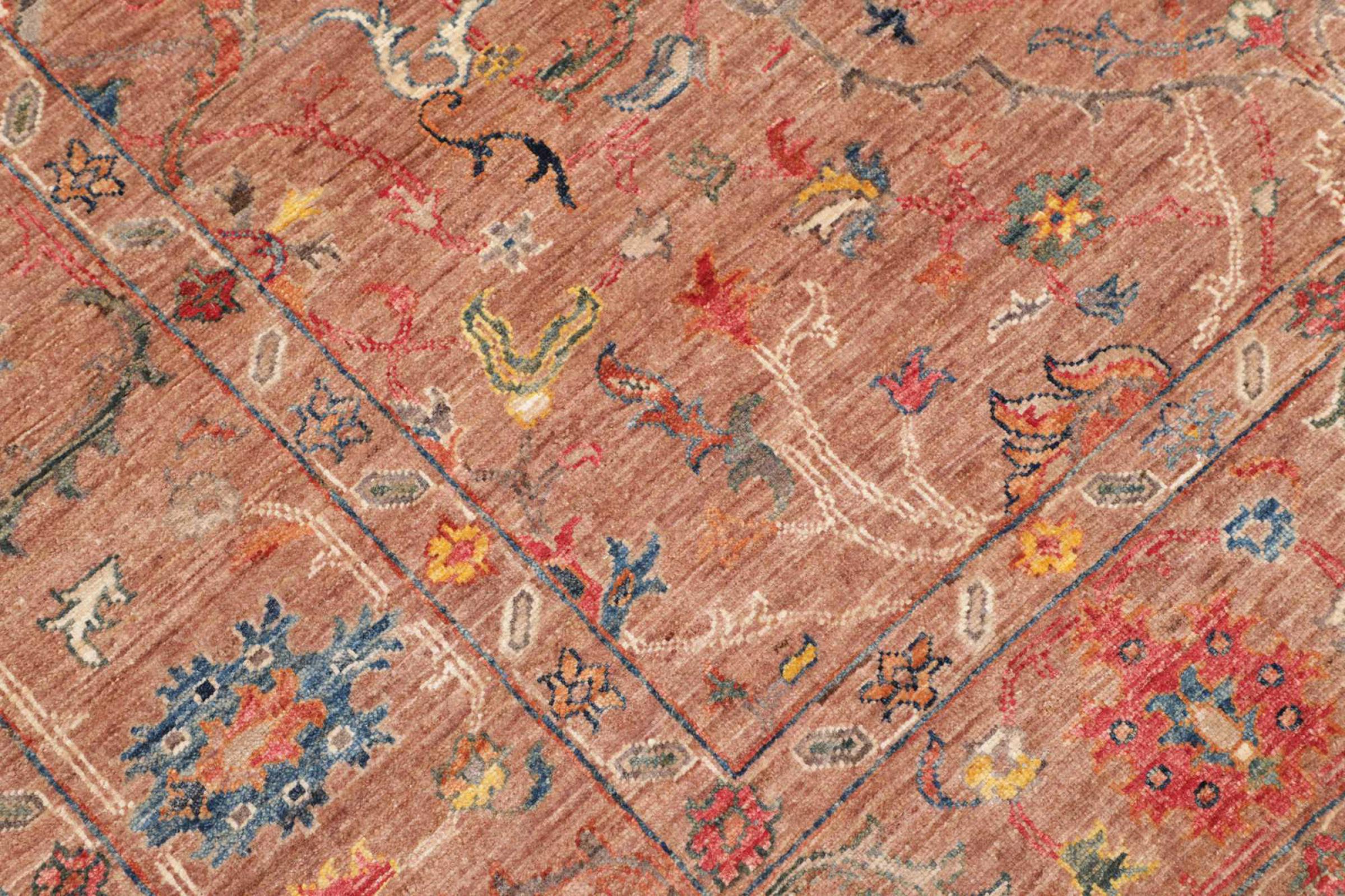 This rug is made of hand spun sheep wool of the highest quality. Especially in Iran (former Persia), Afghanistan and Pakistan wool is still spun by hand before the actual knotting of the rug begins. Wool has proven itself as a natural and extremely hard-wearing material over centuries. Among other things, it has dirt-repellent and heat-insulating properties. At the same time, wool is incomparably soft and has a natural shine.