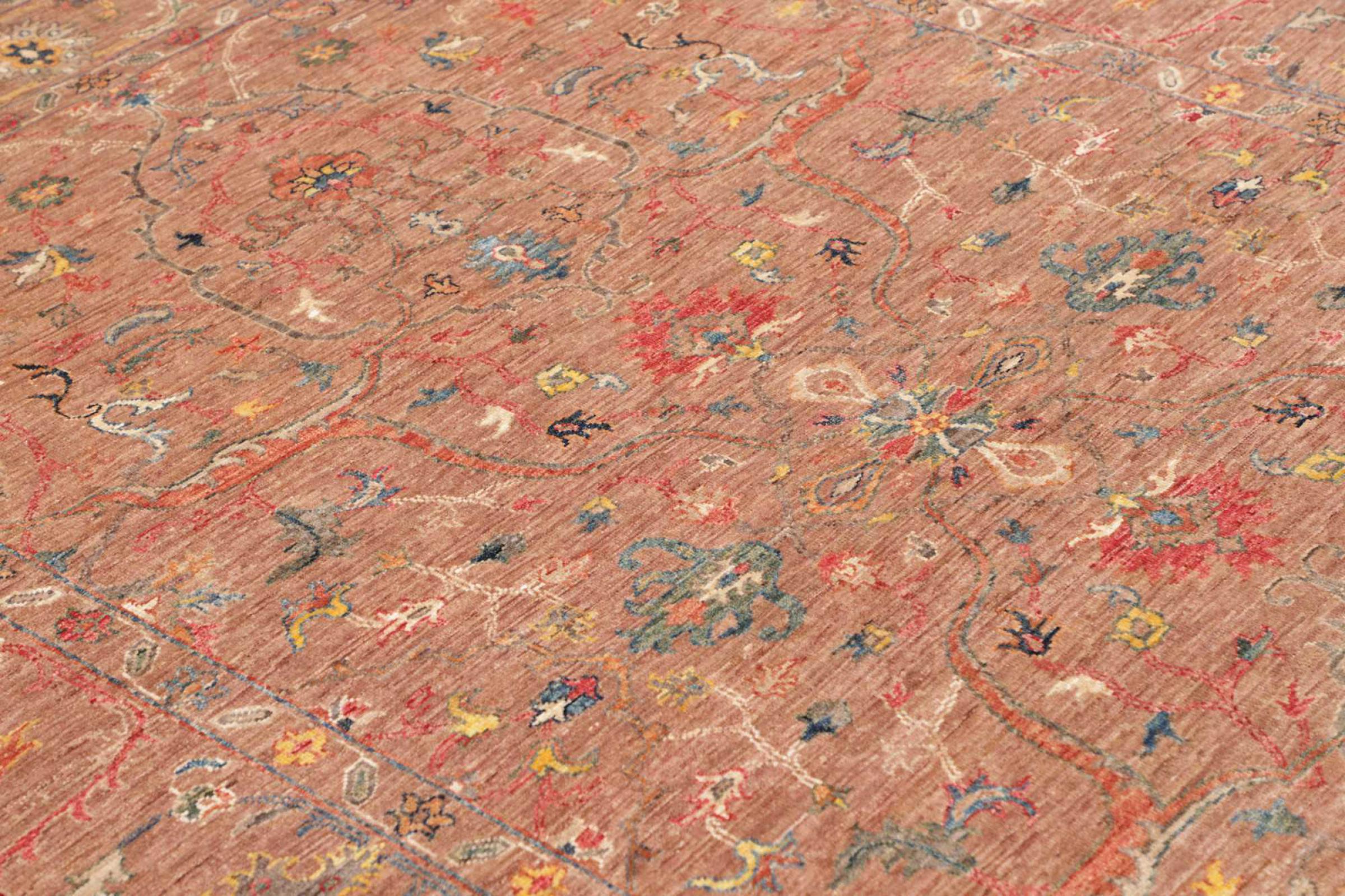 This modern Ziegler carpet was hand-knotted in new colours and patterns in Pakistan. The design and vibrant colours of this type of carpet impresses in modern interiors. Unlike traditional Ziegler carpets, this carpet does not take up the ornaments of traditional Persian carpets. It has a unique design combined with the high quality of natural sheep's wool and traditional craftsmanship.