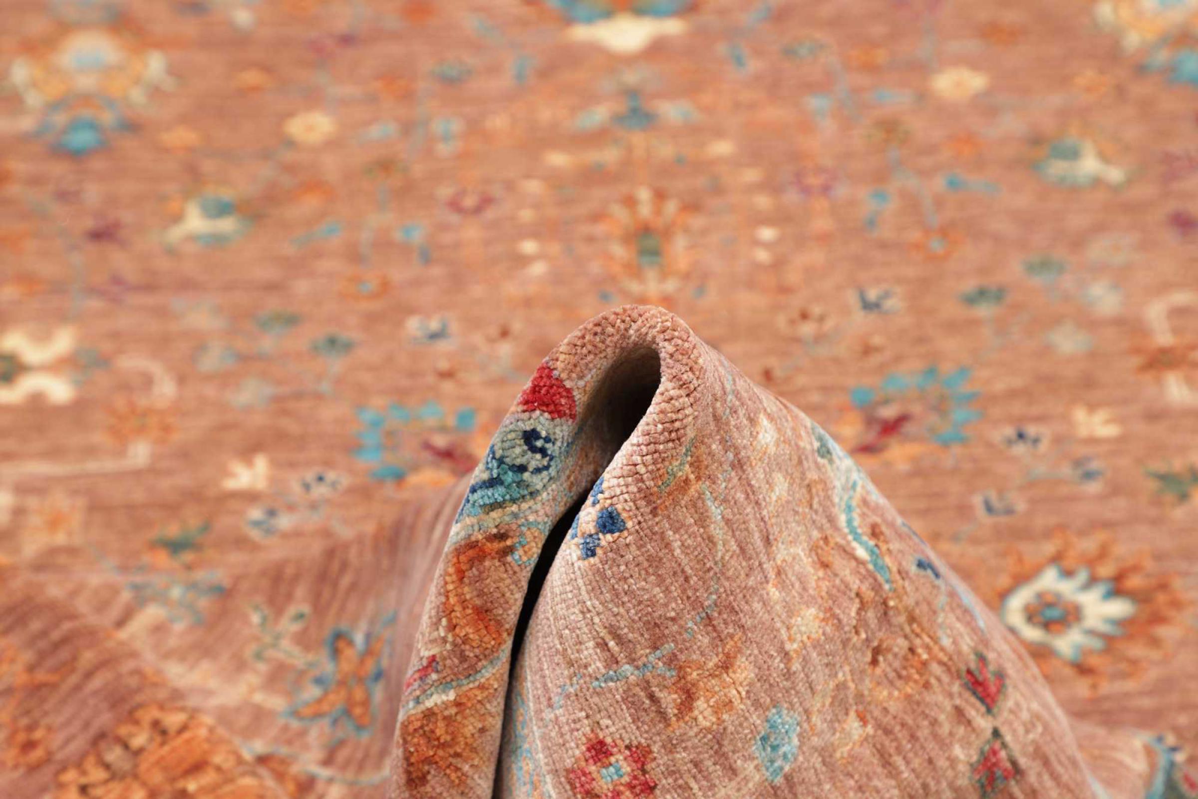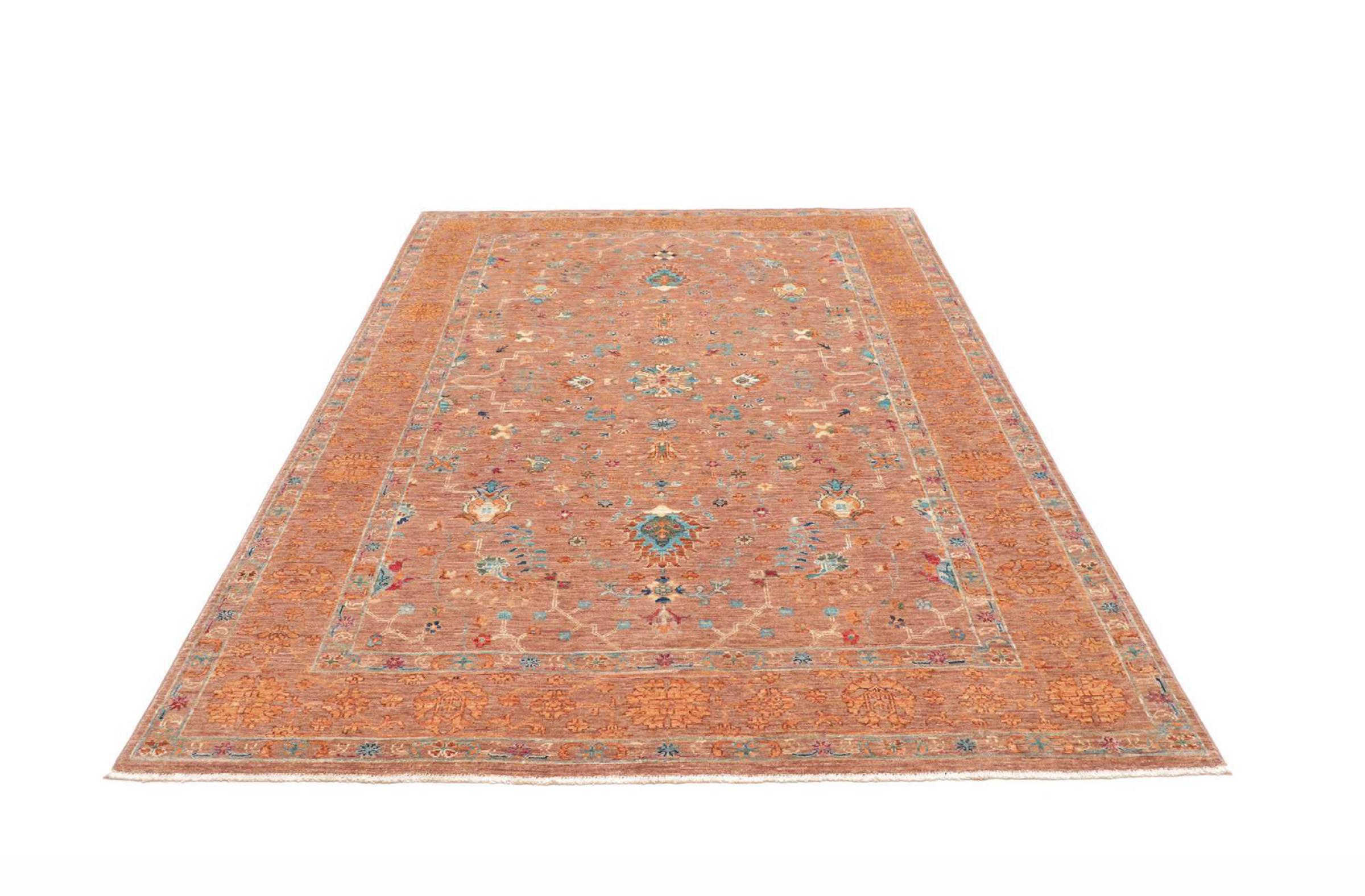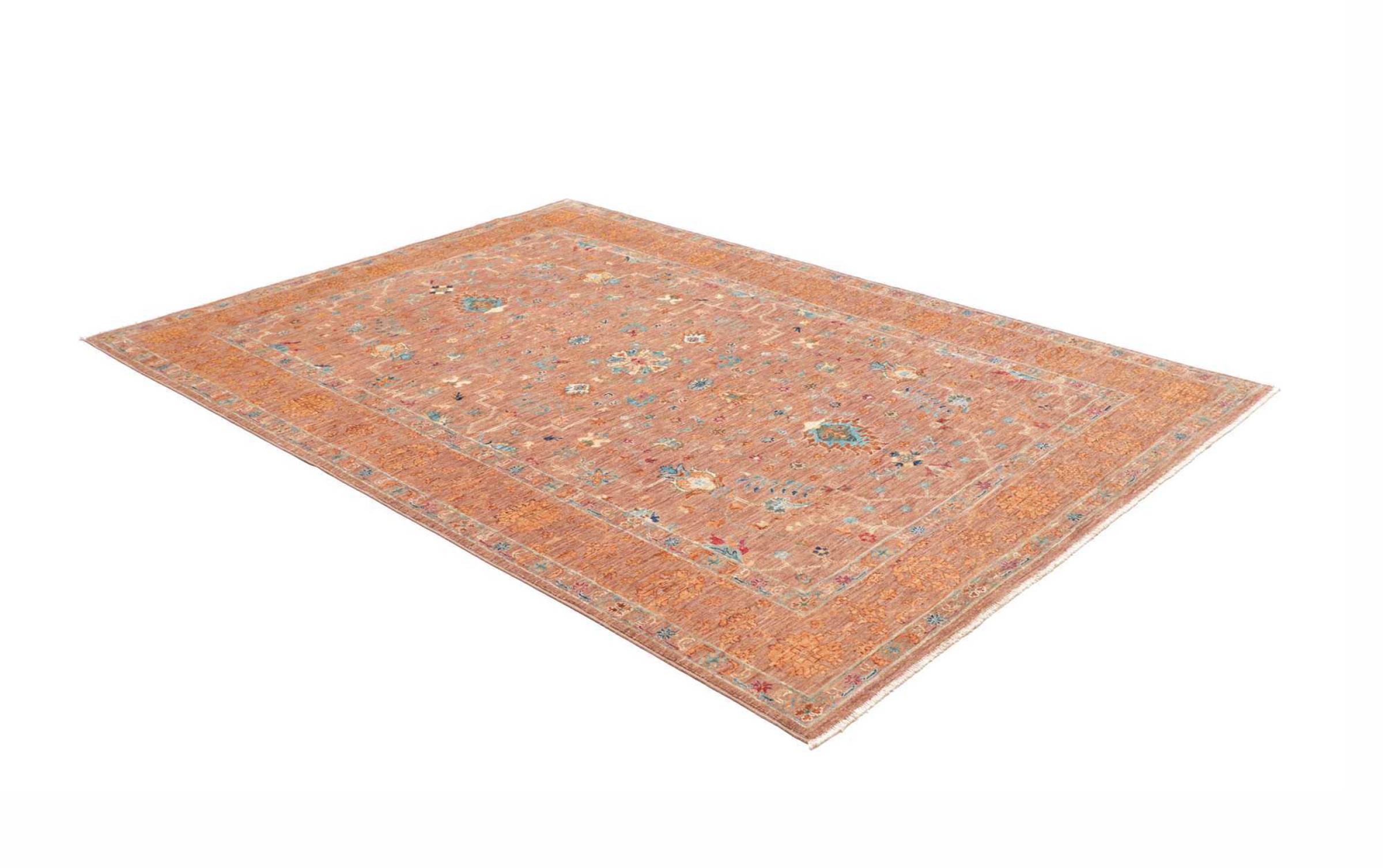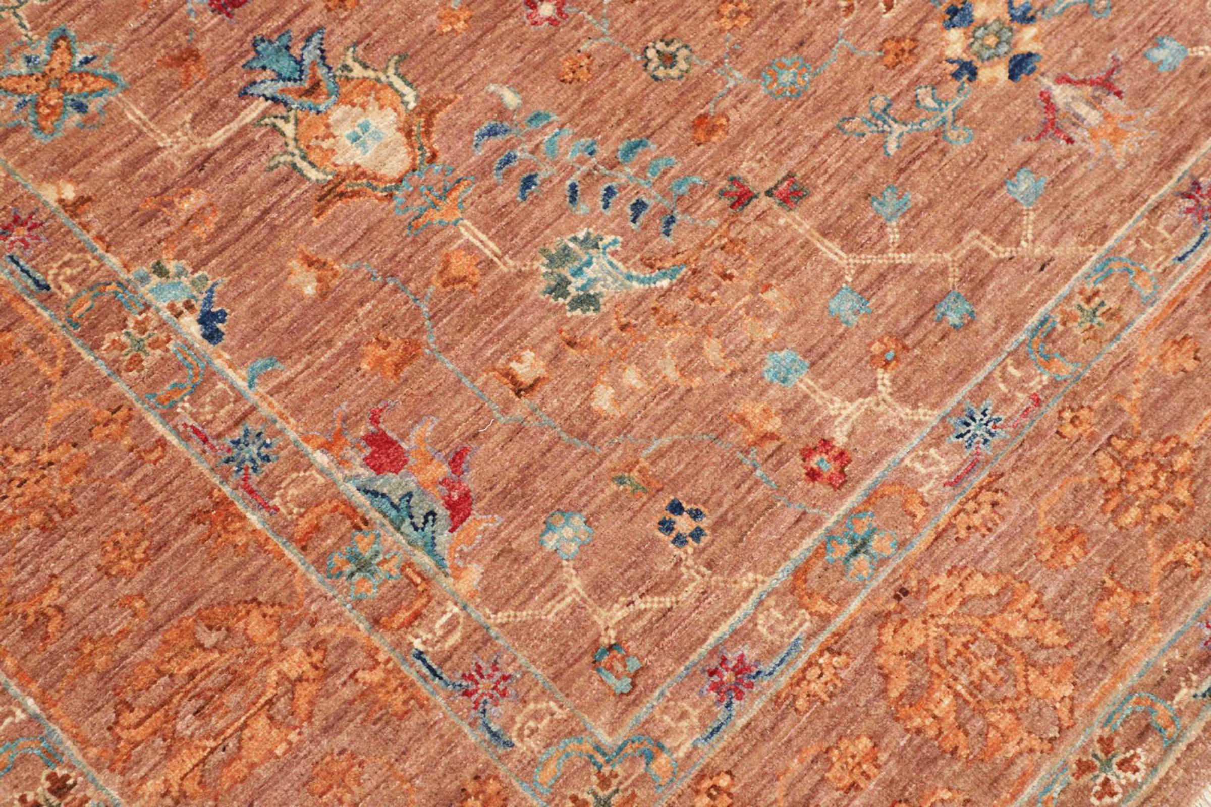 This modern Ziegler carpet was hand-knotted in new colours and patterns in Pakistan. The design and vibrant colours of this type of carpet impresses in modern interiors. Unlike traditional Ziegler carpets, this carpet does not take up the ornaments of traditional Persian carpets. It has a unique design combined with the high quality of natural sheep's wool and traditional craftsmanship.
