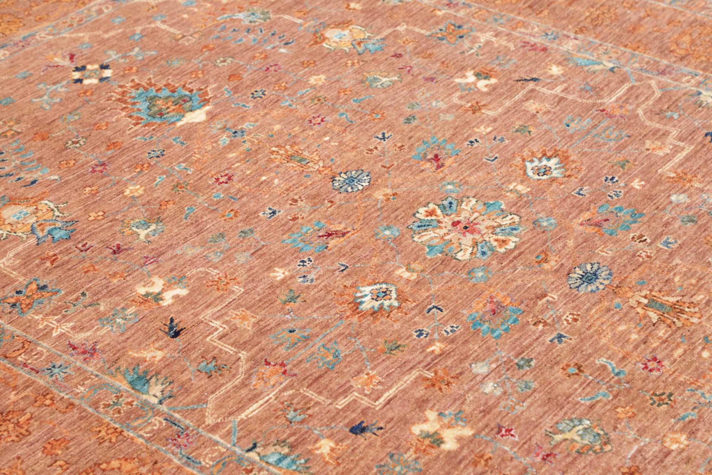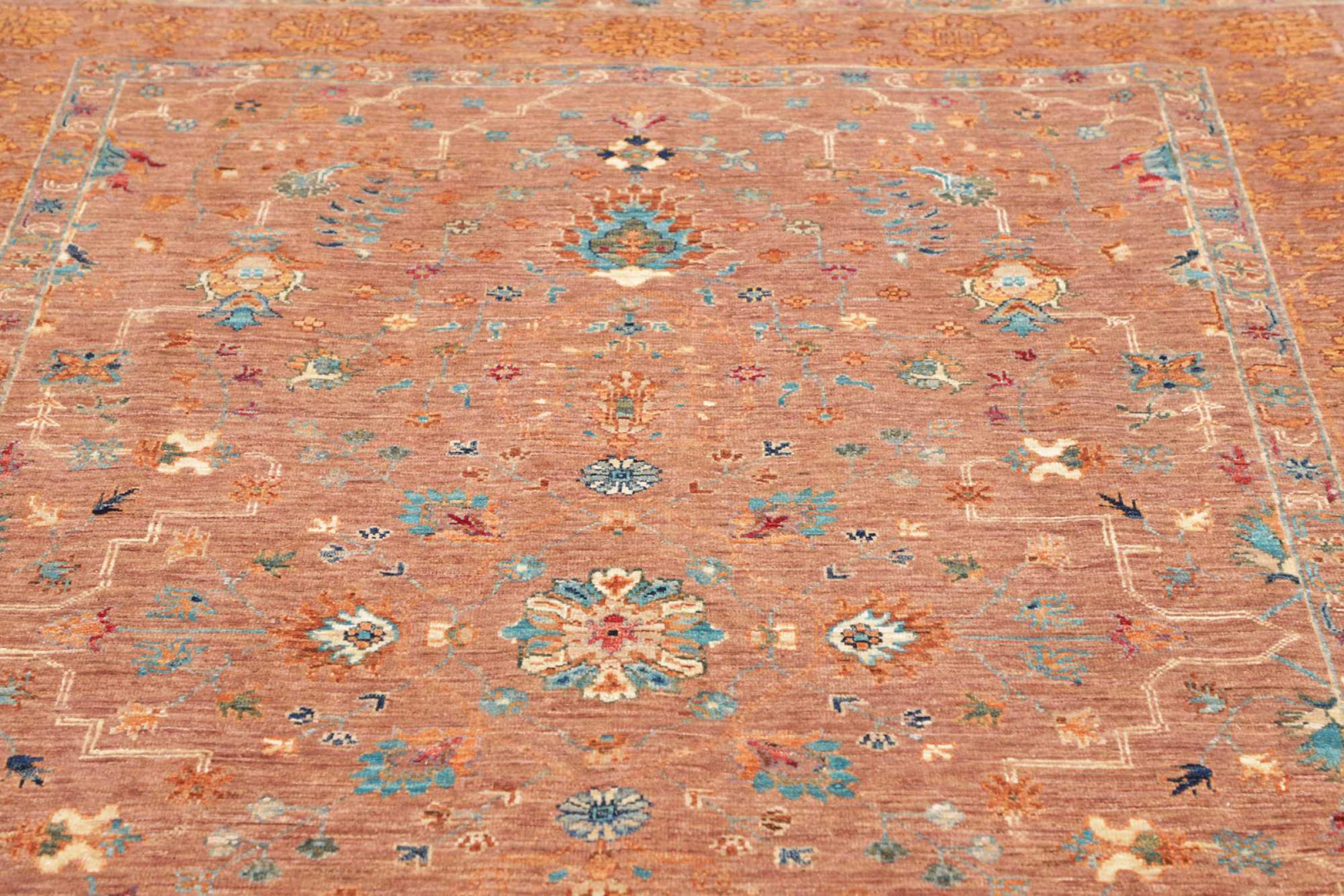This rug is made of hand spun sheep wool of the highest quality. Especially in Iran (former Persia), Afghanistan and Pakistan wool is still spun by hand before the actual knotting of the rug begins. Wool has proven itself as a natural and extremely hard-wearing material over centuries. Among other things, it has dirt-repellent and heat-insulating properties. At the same time, wool is incomparably soft and has a natural shine.