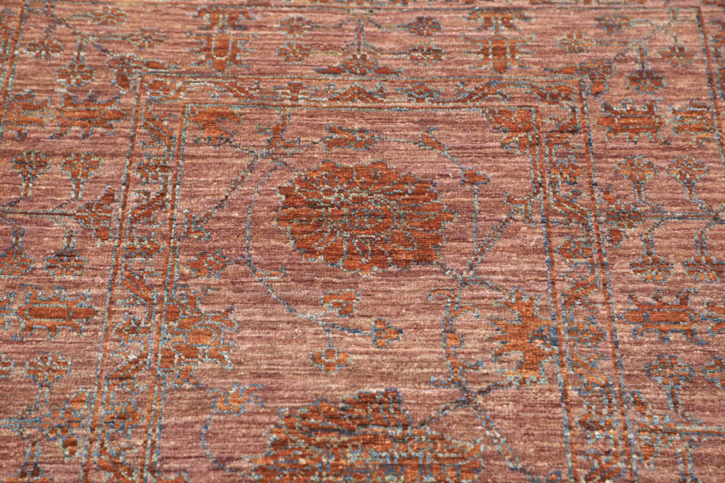 This rug is made of hand spun sheep wool of the highest quality. Especially in Iran (former Persia), Afghanistan and Pakistan wool is still spun by hand before the actual knotting of the rug begins. Wool has proven itself as a natural and extremely hard-wearing material over centuries. Among other things, it has dirt-repellent and heat-insulating properties. At the same time, wool is incomparably soft and has a natural shine.