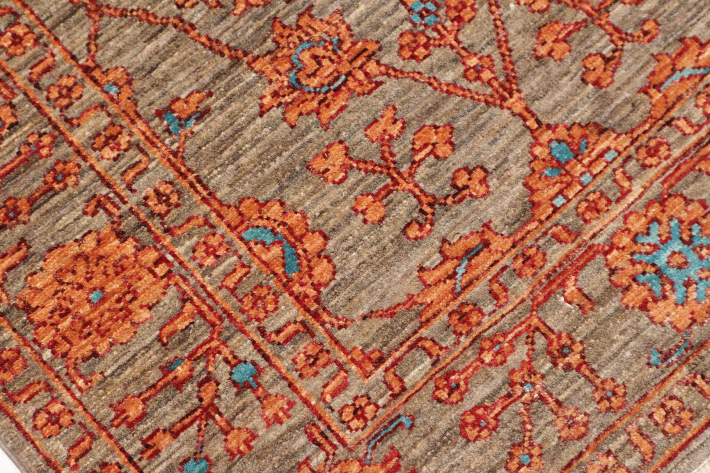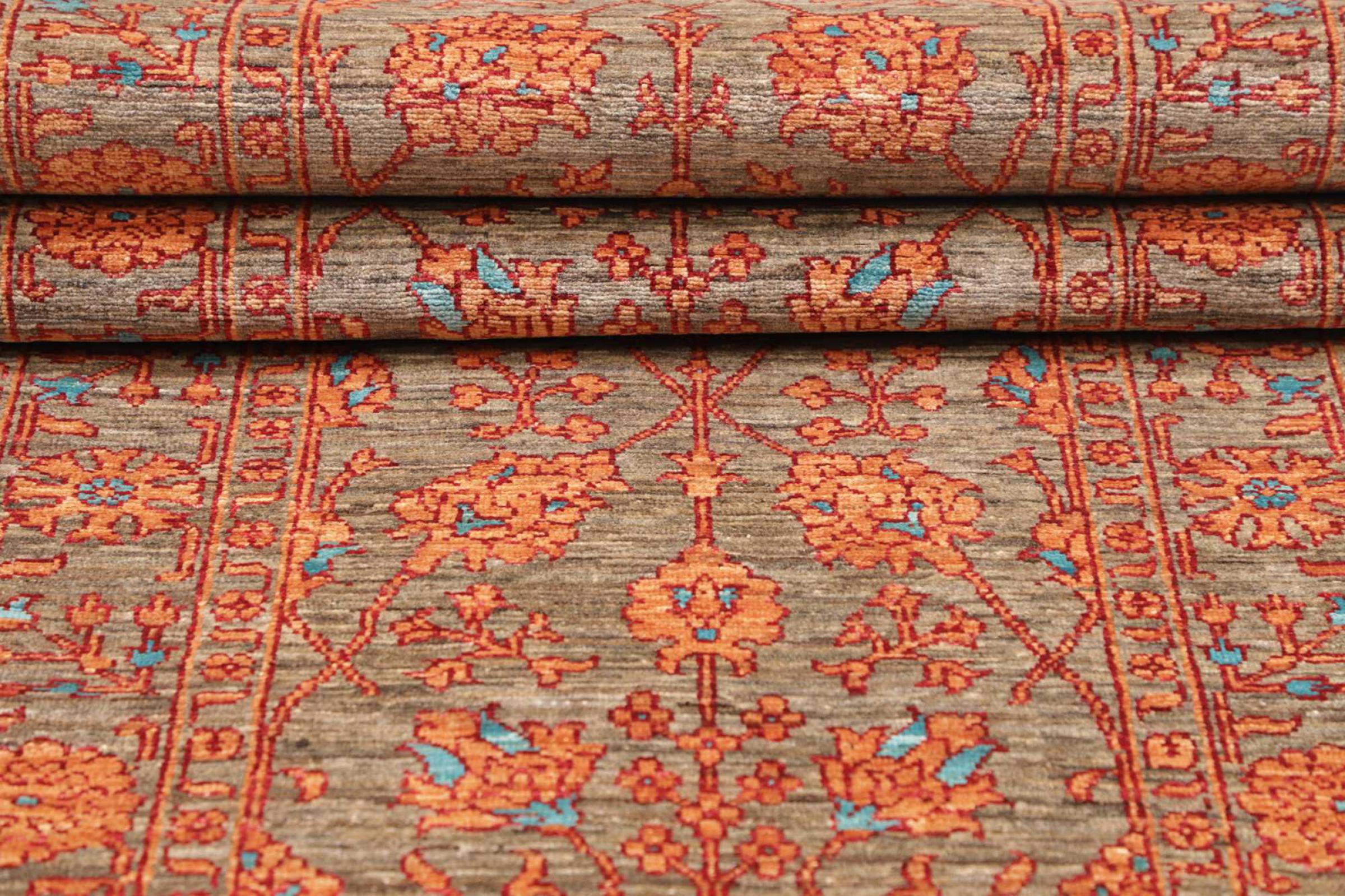 This modern Ziegler carpet was hand-knotted in new colours and patterns in Pakistan. The design and vibrant colours of this type of carpet impresses in modern interiors. Unlike traditional Ziegler carpets, this carpet does not take up the ornaments of traditional Persian carpets. It has a unique design combined with the high quality of natural sheep's wool and traditional craftsmanship.
